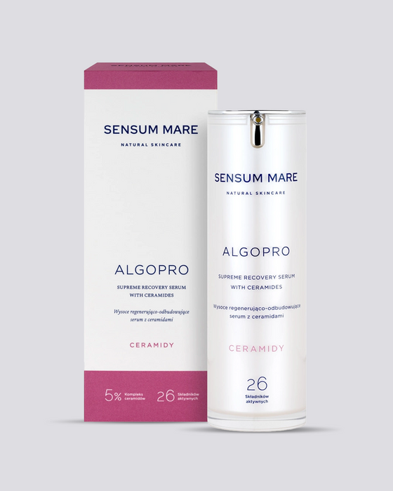 Wysoce regenerująco-odbudowujące serum z 5% kompleksem ceramidów w formie emulsji z linii ALGOPRO zostało stworzone z myślą o specjalistycznej pielęgnacji skóry normalnej, suchej, zmęczonej i wrażliwej. Serum wzmacnia bariere hydrolipidową, poprawia jędrność i sprężystość skóry oraz regeneruje warstwę rogową naskórka.