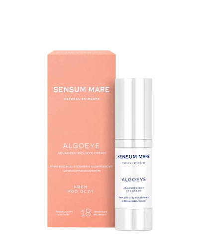 ALGOEYE to linia kosmetyków do pielęgnacji okolic oczu o działaniu wygładzającym i przeciwzmarszczkowym. Znajdziesz ją w ofercie polskiej marki kosmetyków SENSUM MARE. To przebadane dermatologicznie produkty, które powstały z myślą o specjalistycznej i naturalnej pielęgnacji skóry w okolicach oczu. Ich zadaniem jest odmłodzenie spojrzenia. Stosowane podczas porannych i wieczornych rytuałów świadomej pielęgnacji skóry niwelują obrzęki i cienie pod oczami, a także wygładzają, odżywiają, nawilżają oraz redukują zmarszczki.