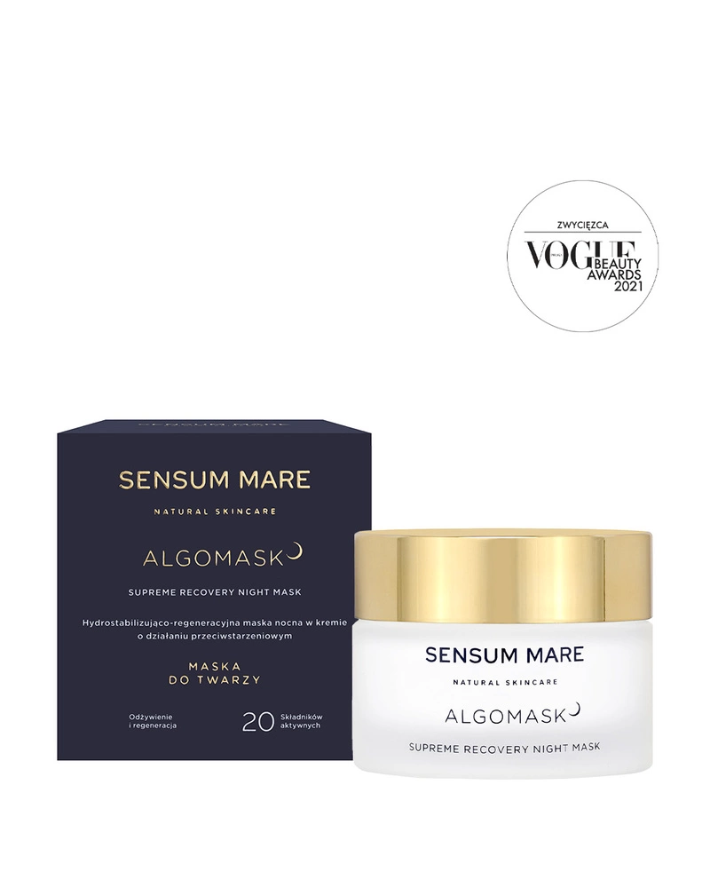 Hydrostabilizująco-regeneracyjna maska nocna ALGOMASK długotrwale nawilża, a także odżywia i regeneruje cerę. To innowacyjny kosmetyk do twarzy w kremie o bogatej recepturze, która powstała z połączenia 20 składników aktywnych. Koi skórę twarzy podczas snu, uzupełniając cenne składniki aktywne. Hydrostabilizująco-regeneracyjna maska nocna SENSUM MARE działa podczas snu niczym nawilżająco-regeneracyjny kompres, pozostawia jędrną, sprężystą i dobrze nawilżoną cerę.