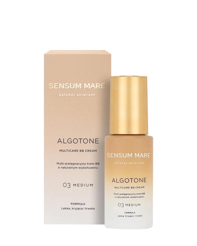 ALGOTONE to linia produktów do makijażu, którą znajdziesz w ofercie polskiej marki kosmetyków do specjalistycznej pielęgnacji SENSUM MARE. Są to multi-pielęgnacyjny krem BB w 4 odcieniach oraz gąbeczka do makijażu.